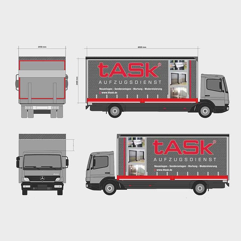 Ziel bei der tASk Aufzugsdienst GmbH war es, ein authentisches Gesamtbild zu schaffen: Ein maßgeschneidertes CI mit wohlüberlegten Farben und einem einzigartigen Charakter, der den Wiedererkennungswert um ein Vielfaches steigern würde. Ob YouTube-Video, Autobeschriftung, Kalender oder Webseite, die Firma tASk sollte auf einen Blick erkannt werden.
