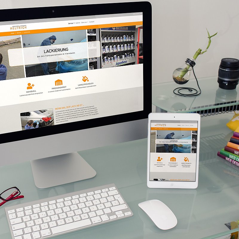 Die Firma Helfrich e.K. - Karosseriebau & Lackierungen - erhielt von uns ein ganz neues Gewand. Herr Helfrich entschied sich für unser M-Paket. Das Ergebnis ist eine umfassende Webseite, mit Suchmaschinen optimierten Texten, sowie neuen Bildern, die wir vor Ort und bei seinen Partnern geschossen haben.